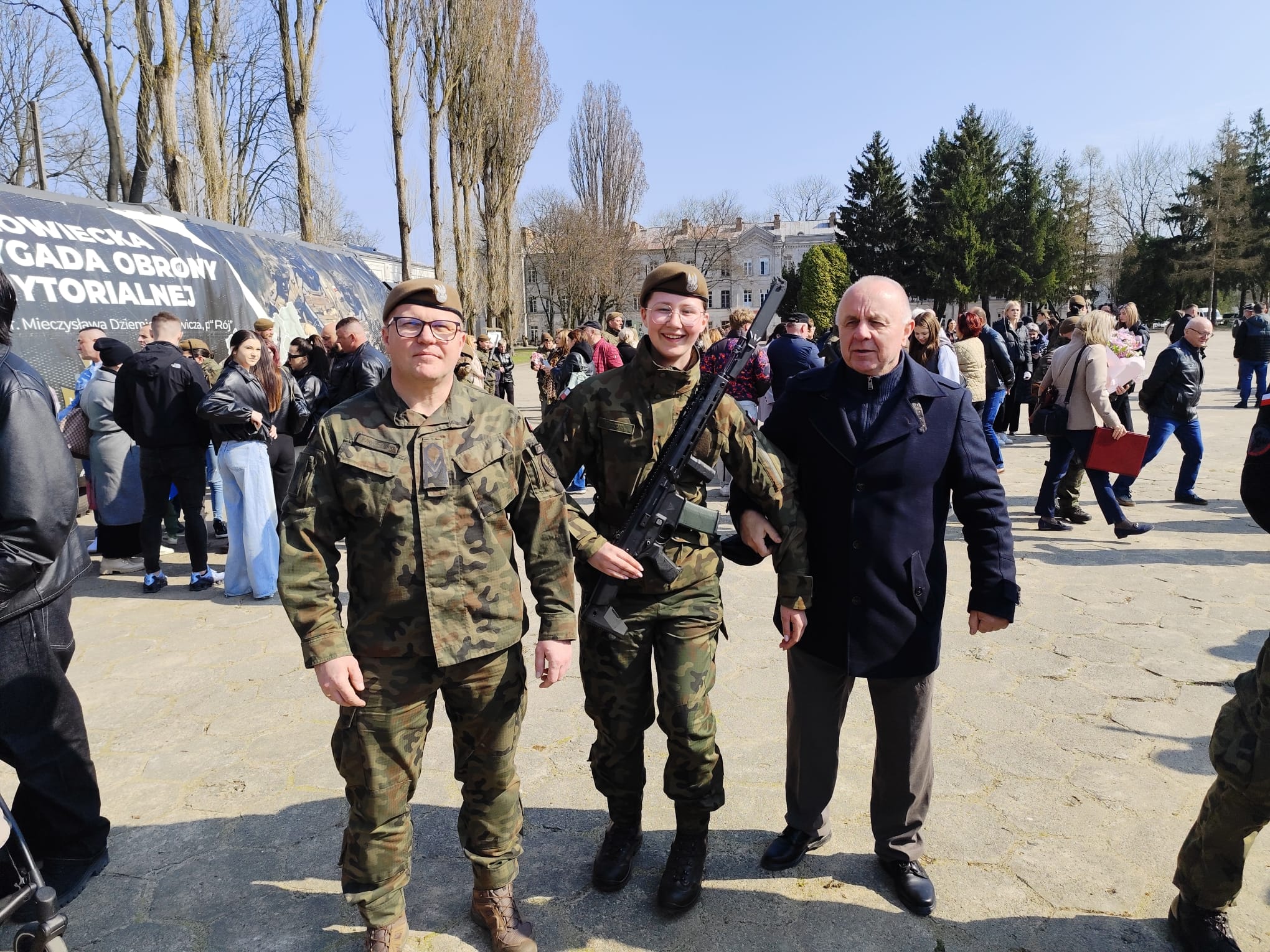 W sobotę 28 marca na terenie Jednostki Wojskowej odbyła się przysięga żołnierzy Terytorialnej Służby Wojskowej z udziałem delegacji naszej szkoły na czele z Dyrektorem Dariuszem Mosakowskim. Wśród żołnierzy składających przysięgę znalazły się trzy uczennice ST BZDZ Zuzanna Antczak, Oliwia Bobińska i Paulina Tyburska. Jesteśmy dumni z naszych dzielnych dziewcząt.